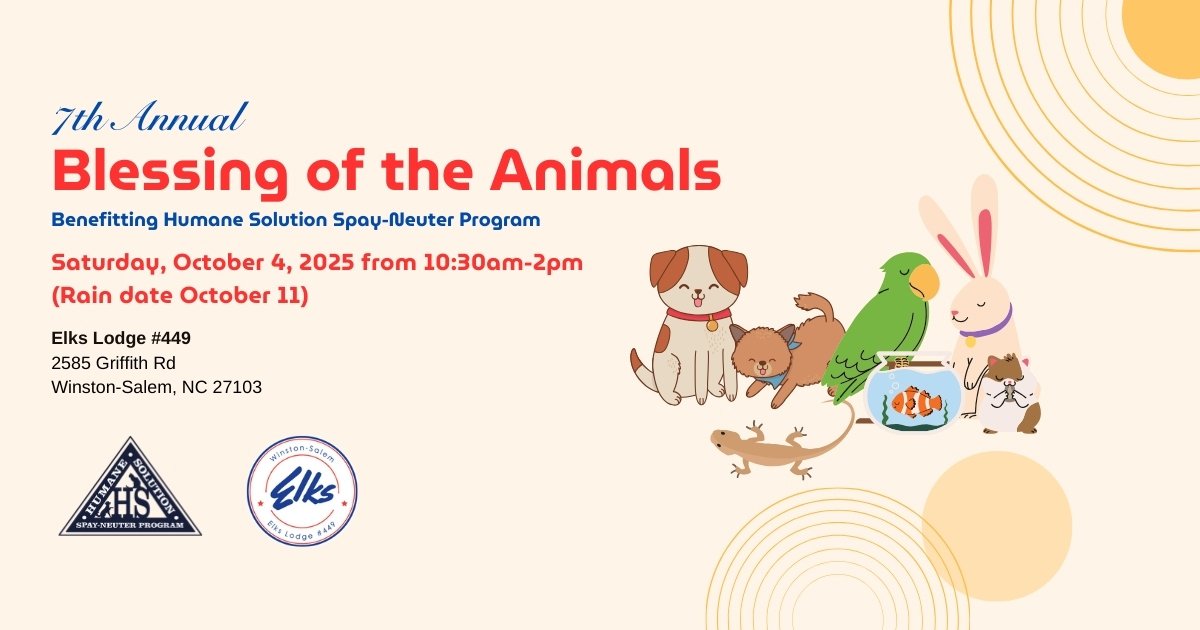Join the Winston-Salem Elks for their Blessing of the Animals benefitting Humane Solution Spay-Neuter Program!